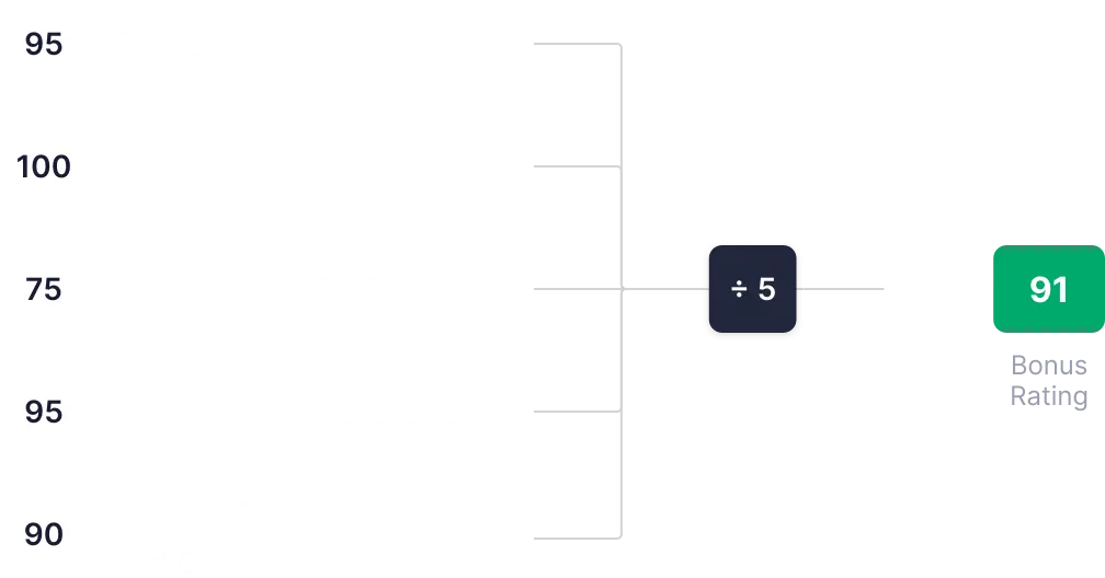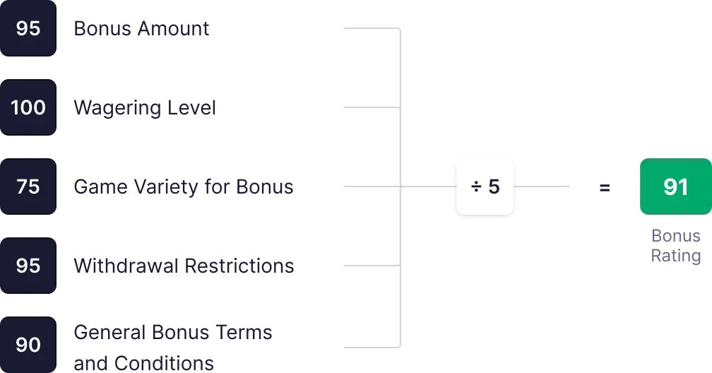 | Ако казиното предлага бонуси (начални и ексклузивни без депозит) с по-високи от средните изисквания. | 90 |
